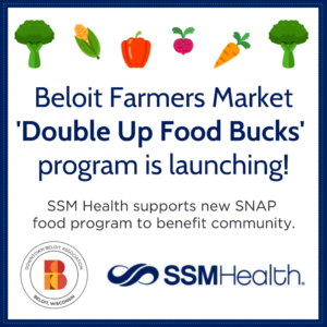 The Beloit Farmers Market and SSM Health Double Up Food Bucks program encourages community members who receive Supplemental Nutrition Assistance Program (SNAP) benefits to purchase fresh produce and grocery essentials from local vendors.