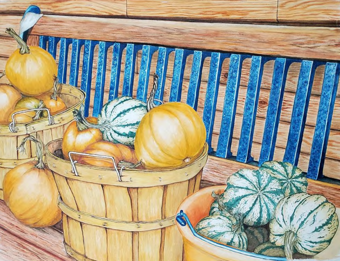 In the Bell Gallery, artwork by Susan Porubcan, will be on display. Porubcan aligns herself with watercolor enthusiasts. Other mediums she dabbles in are cut paper, colored pencil, and acrylics. However, watercolors are where her heart is. Although she mainly paints photorealistic items, she finds abstraction can be a very powerful