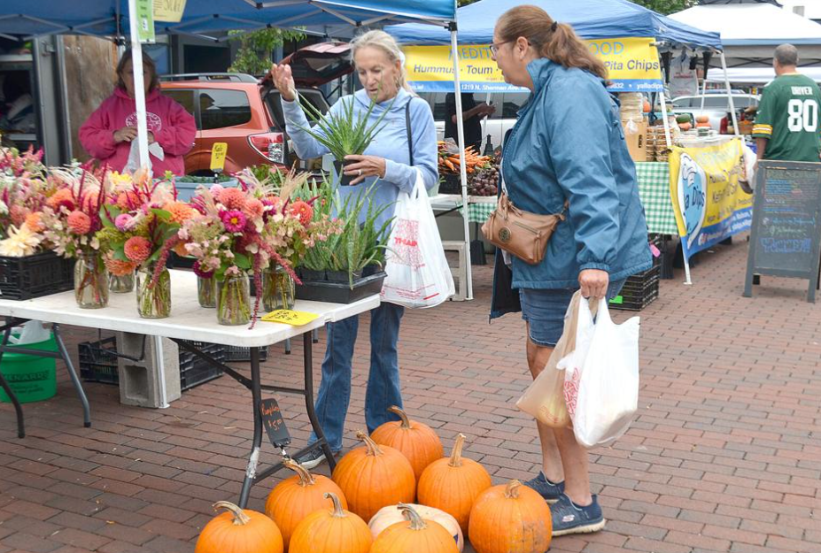 Patrons check out flowers, pumpkins and other goods at the Downtown Beloit Farmers Market on Saturday. This coming Saturday, Oct. 25, will mark the final outdoor Farmers Market of the season.