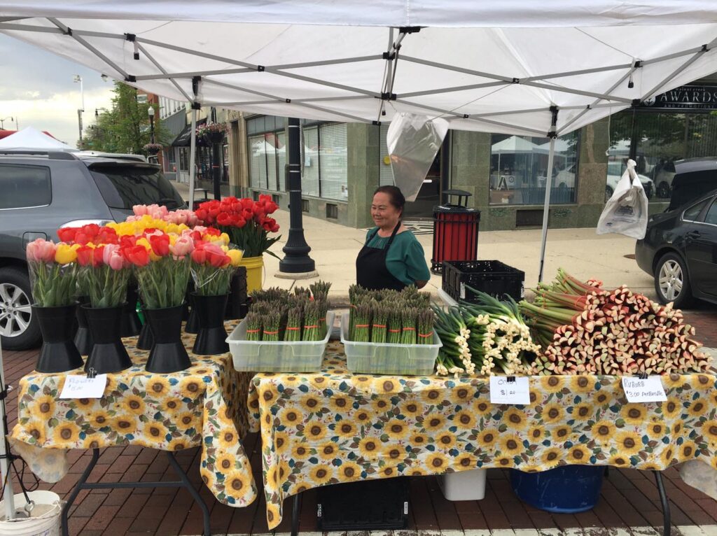 Offering: asparagus, basil, beans, green beans, broccoli, collards, cucumbers, currants, flowers, garlic (bulb, scapes), kale, kohlrabi, lettuce, okra, onions, pea shoots, peas (snow, sugar snap), peppers (hot, green, purple, red, yellow), potatoes, radishes, raspberries (red), rhubarb, spinach, squash (summer, winter), swiss chard, tomatoes, vegetable seedlings, vegetable seeds