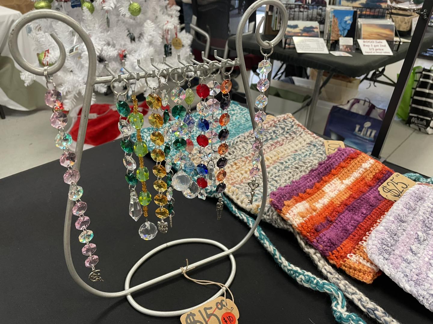 Card Nineteen Suncatchers by Torrie Thomas. Bright light and positive energy into any space. When placed in direct sunlight, suncatchers scatter rainbows and flecks of light. Viewing the refracted light promotes a sense of calm and can even boost one’s mood. Every suncatcher is hand crafted and unique.