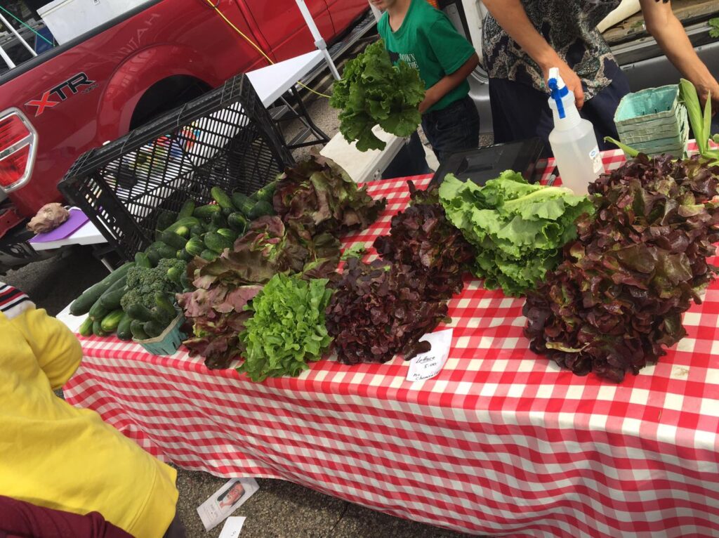 Offering: asparagus, basil, beans, green beans, beets, broccoli, brussels sprouts, green cabbage, cantaloupes, carrots, cauliflower, celery, corn (sweet), cucumbers, flowers (cut, dried), garlic (bulb, scapes), kale, kohlrabi, lettuce, melons, parsley, parsnips, peas (english, snow, sugar snap), peppers (hot, green, red, yellow), potatoes, pumpkins, radishes, red raspberries, rhubarb, spinach, squash (summer, winter), strawberries, sweet potatoes, swiss chard, tomatoes, turnips, watermelon