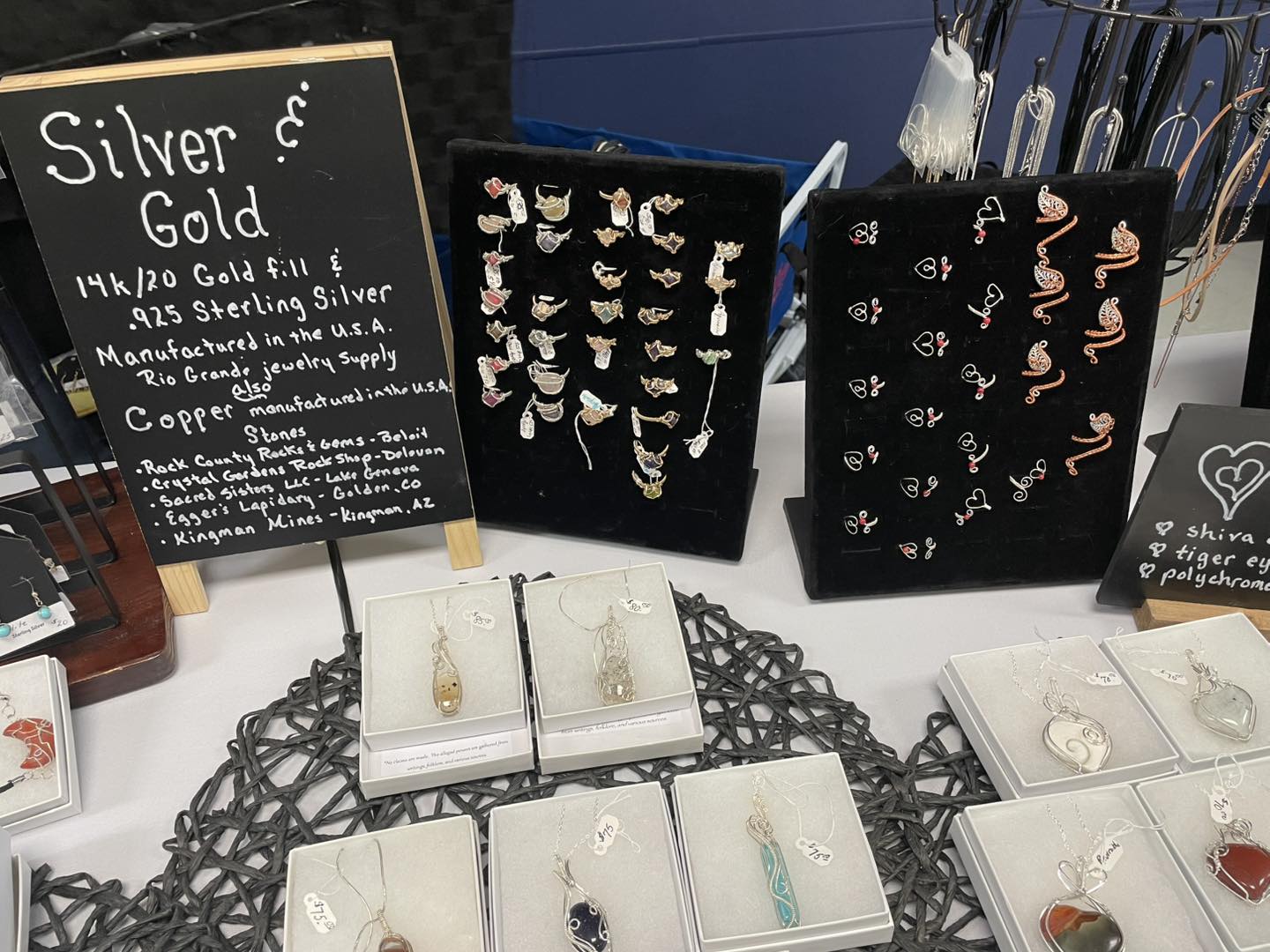 Stunning jewelry featuring genuine stones and crystals and unique cabochons wrapped in gold-filled, rose gold filled, sterling silver, and copper wire. Each piece is handcrafted with care and intention. Offering pendants, bracelets rings, earrings and ear cuffs.