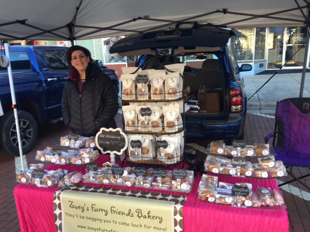 Zoey’s Furry Friends Bakery was influenced by my dog Zoey. She was a Border Collie Mix and she is my tester, along with all her doggie cousins. Our treats have no preservatives and are 100% natural. Baked and dehydrated in small batches. Our dog frosting comes from a company that is specific towards dogs. It’s natural and is used for our decorated treats. We have expanded to also making. Our new product line includes: bow ties and flowers for your dog collars, paw butter for your pups for use on paws, noses and dry rough spots. Along with in between bath deodorizing spritz made from sweet orange and lavender essential oils.