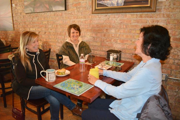 Lizzie Menz, Dawn Stadelman and Jo Christofferson enjoy coffee, bagels and conversation at Bagels & More in downtown establishment