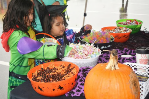 There will be cars parked in the lot, decorated for the season and manned by costumed volunteers from a variety of agencies. They will be handing out candy to the children who make the rounds in the parking lot.