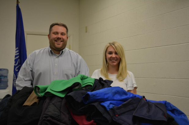Visit Beloit Executive Director Celestino Ruffini and Pam Garland-Gjestson pose with winter clothing donated